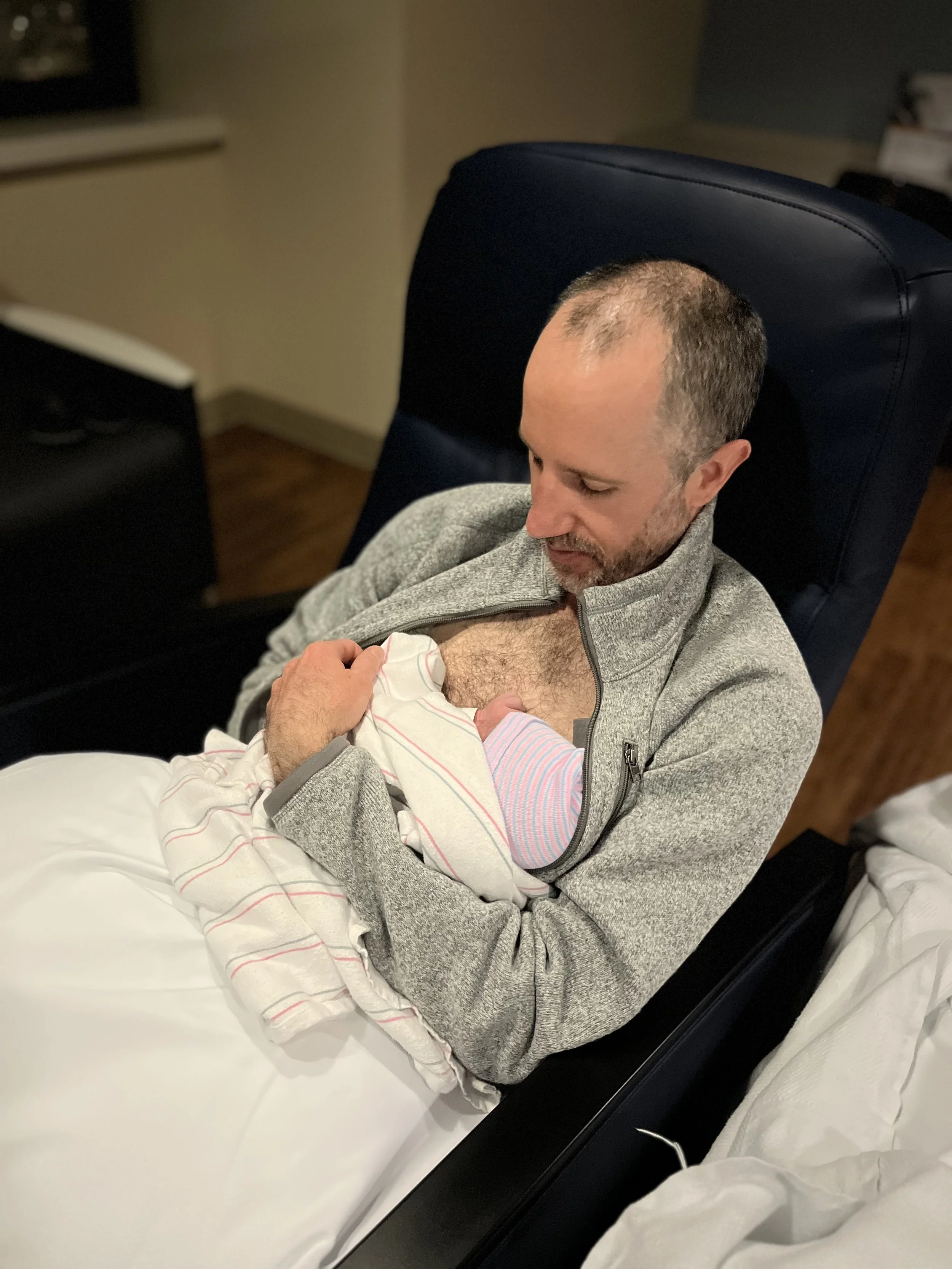 Research shows that regular skin-to-skin contact benefits parents in the following ways: